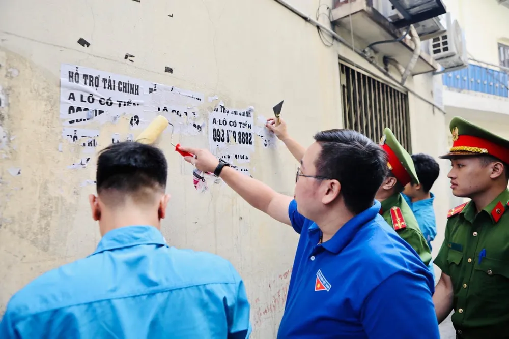 Sáng 11-6, sau lễ ra quân chiến dịch tình nguyện Hành quân xanh năm 2023 ở Thành đoàn TPHCM, thực hiện chương trình phối hợp giữa Công an TPHCM và Thành đoàn TPHCM, Ban Thường vụ Đoàn Thanh niên Công an TPHCM kết nối, phối hợp với 22 quận huyện đoàn, Thành đoàn TP Thủ Đức tiếp tục ra quân triển khai bóc xóa quảng cáo ở 312 xã, phường, thị trấn.