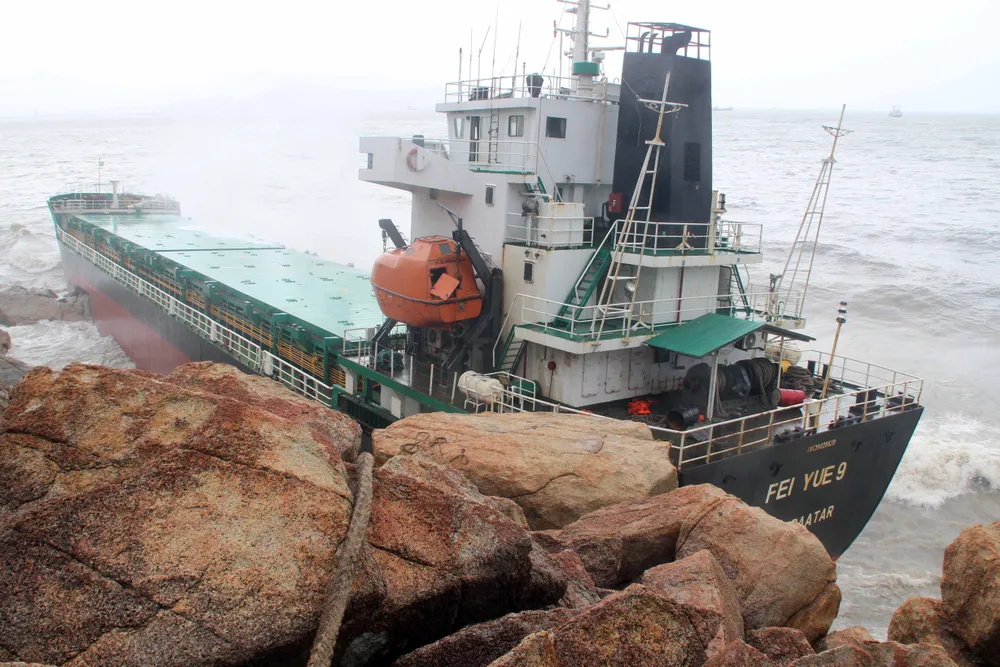 Con tàu số hiệu nước ngoài FEI YUE 9 vẫn còn nằm mắc kẹt bên mõm đá tại vùng biển Ghềnh Ráng. Theo thông tin cơ quan chức năng, tàu này có quốc tịch ở Mông Cổ; người trên tàu có 15 người trong đó, 9 người Trung Quốc và 6 người ở Myanmar.