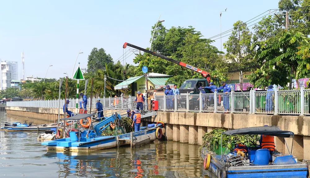 Trong một lần theo chân đội công nhân thu gom rác trên kênh Nhiêu Lộc - Thị Nghè (thuộc Công ty TNHH MTV Môi trường đô thị TPHCM), chúng tôi đã chứng kiến các anh chị công nhân vớt từ 7-8 tấn rác thải mỗi ngày. Họ luôn phải oằn mình xuống dòng kênh để vớt từng bịch rác đưa đi xử lý, từ ngày này qua tháng nọ, nhưng rác không giảm mà thực tế còn tăng lên. Đầu tháng 10-2022, trở lại Công ty TNHH MTV Môi trường đô thị TPHCM, chúng tôi gặp các anh chị công nhân vớt rác khi trước. Công việc của họ vẫn là... vớt 9-10 tấn rác/ngày, thậm chí ngày cao điểm lên tới 13-14 tấn.