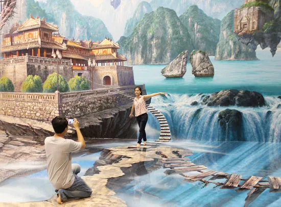 (SGGPO).- Sử dụng loại hình nghệ thuật 3D Painting, 15 họa sĩ đến từ Hàn Quốc đã vẽ lên nền và tường để tạo cảm giác như thật và biến khách tham quan thành nhân vật chính của bức họa.