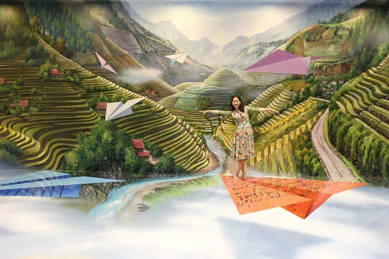 Tham quan ruộng bật thang bằng tàu bay giấy