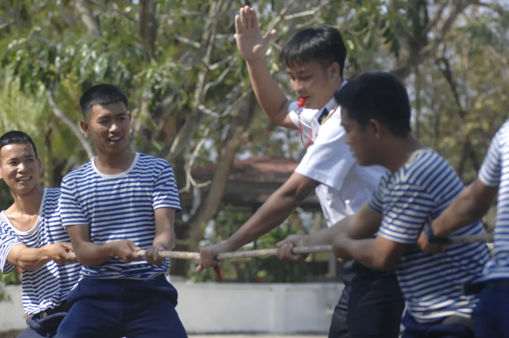 Để không khí thêm rộn ràng, các tân binh tại Tiểu đoàn 563 được tham gia các trò chơi dân gian. Ảnh: TÍN HUY