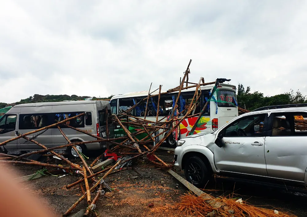 Thông tin từ phía người dân cho biết, nhiều xe khách, xe tải đang lưu thông hoặc đang đậu ở trước khu du lich gành Đá Đĩa này đều bị lốc xoáy cuốn xe, có nhiều tài xế bị thương.