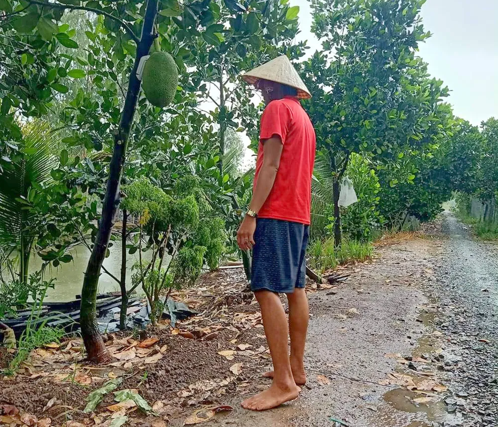 Anh Lê Duy Hiếu, ngụ huyện Tháp Mười, tỉnh Đồng Tháp cho biết, hơn 200 gốc mít của gia đình vừa được tưới mát bởi cơn mưa kéo dài hơn 1 giờ. Đây là cơn mưa hiếm hoi kể từ trước Tết đến nay.