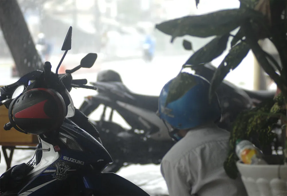 Bất kể trời mưa, mọi người vẫn tiếp tục lưu thông ngoài đường. Ảnh: TÍN HUY