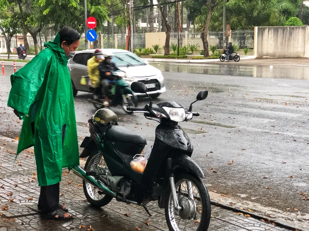 Theo đó, từ sáng sớm trời đã kéo mây đen bao trùm TP Cần Thơ. Đến khoảng 8 giờ 45 phút, trời bắt đầu đổ mưa, nhiều người tấp vào lề đường để mặc áo mưa.