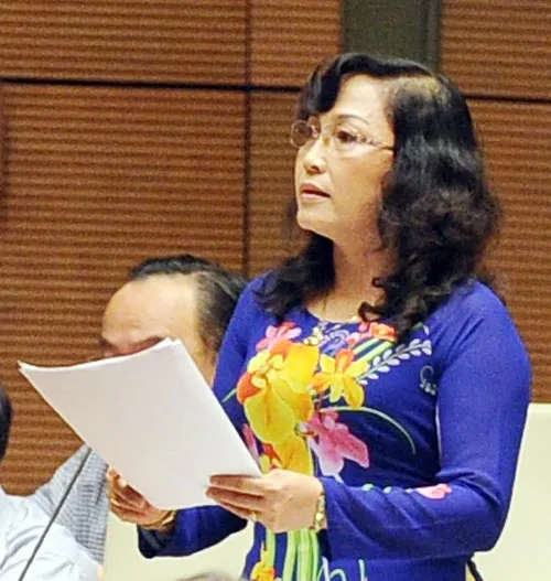 ĐB Nguyễn Thị Kim Bé (Kiên Giang) phát biểu tại buổi thảo luận sáng 8-6. Ảnh: Lã Anh