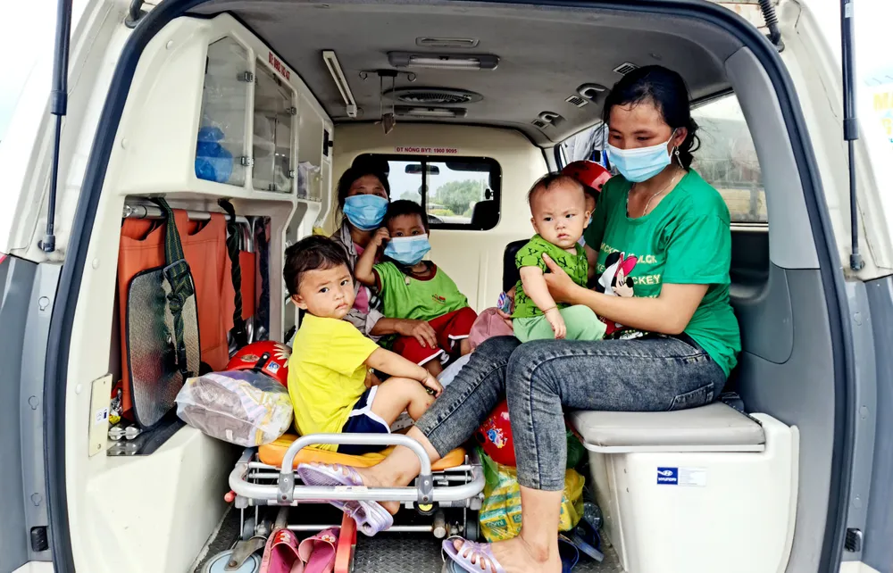 Phóng viên này đã liên hệ với lãnh đạo Bệnh viện Sản Nhi Nghệ An nhờ giúp đỡ. Ngay lập tức, bệnh viện đã cho một xe cứu thương cùng nước uống, sữa, thực phẩm tới tiếp sức và vận chuyển miễn phí chị Nênh, chị Pà và 4 cháu bé về quê.