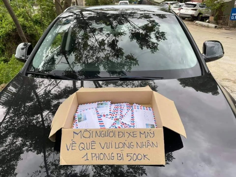 Từ chiều tối cho đến khuya ngày 30-7, chị Hiền cùng 2 người nhà chạy xe ra cầu Bến Thủy 2. Tại đây, chị bỏ vào mỗi phong bì 500.000đ rồi đặt lên nắp capo đầu xe ô tô. Sau đó, chị viết lên Facebook cá nhân nhờ mọi người chia sẻ.
