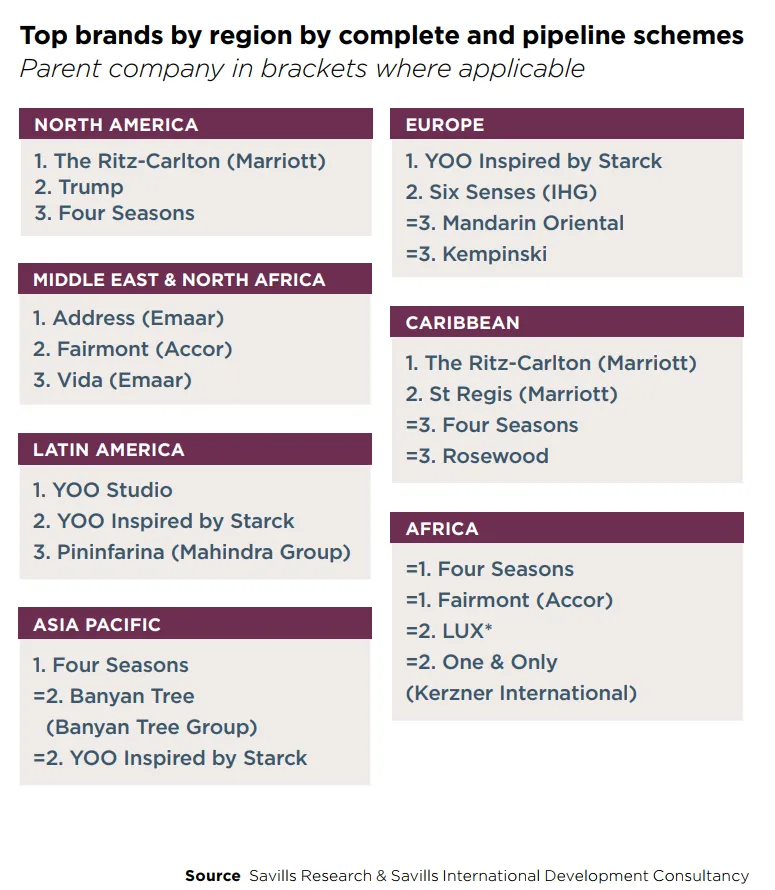 Cũng trong một công bố trước đó của Savills, YOO Inspired by Starck đã chiếm giữ vị trí hàng đầu vào năm 2020 với số lượng dự án hoàn thành và đang triển khai cao vượt trội hơn hẳn các thương hiệu khác. YOO Inspired by Starck là cái tên được ưa chuộng hàng đầu ở châu Âu, châu Mỹ Latinh và châu Á - Thái Bình Dương.